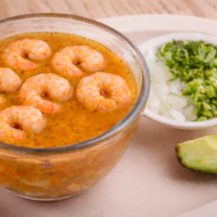 Red aguachile made with your choice of scallops, shrimp or scallops and shrimp.