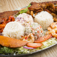 Unpeeled shrimp, prawns, mussels and crab leg, bathed with a spicy, Nayarit-style sauce.