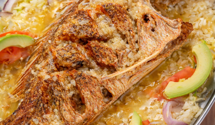 Huachinango a la Mantequilla November 28, 2023By admin Acompañado con ensalada de jaiba,ensalada verde y arroz blanco. Deep-fried, red snapper bathed with a buttery sauce. Served with crab salad, green salad, and white rice. Post navigation Prev postPrev post:Next postNext post: